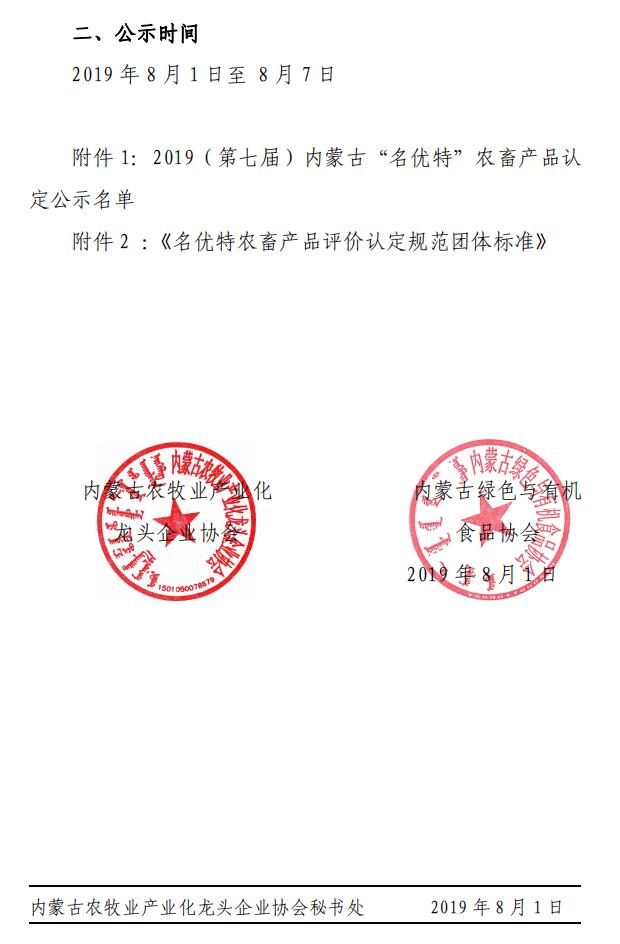 2019第七屆內(nèi)蒙古“名優(yōu)特”農(nóng)畜產(chǎn)品認定公示名單